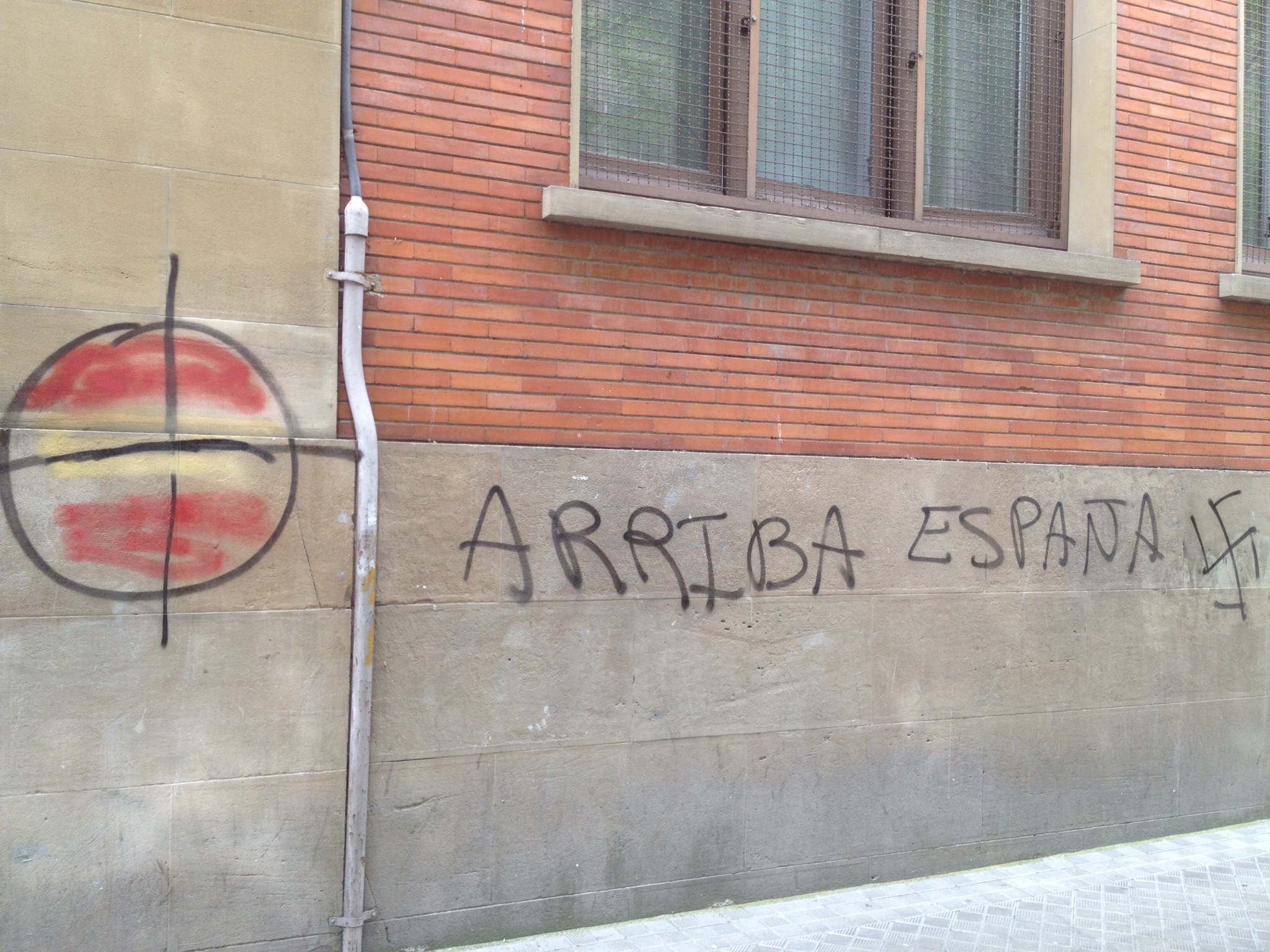 Las pintadas de ideología fascista, nazi, xenofobas y racistas aparecidas en las paredes de un céntrico instituto de Iruñea nos ofrecen una oportunidad inmejorable para reflexionar sobre simbología de corte fascista en la ciudad. La gravedad de las pintadas realizadas en el exterior de un centro educativo con la protección de la noche, pero, no lo olvidemos, en una ciudad plagada de cámaras tanto públicas como privadas y en una zona suficientemente transitada, a la vuelta de una plaza con buena visibilidad y a escasas dos manzanas del cuartel de la Guardia Civil (¿casualidad?), me hacen pensar que, desgraciadamente, no son fruto de la casualidad, ni algo aislado.