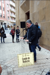Hoy, 14 de abril de 2016, día en el que algunas personas celebran su República, día en el que otras celebramos también aquella República, esa idea llena de democracia, con el convencimiento de que algún día también nosotras y nosotros podremos celebrar nuestro Errepublikaren Eguna, este día, por fin, tras décadas de vergüenza y escarnio, una plaza de Iruñea ha dejado de llevar el nombre de un ministro franquista. Hoy la plaza Conde de Rodezno ha pasado a denominarse Plaza de la Libertad-Askatasunaren Enparantza.